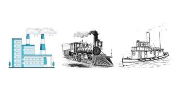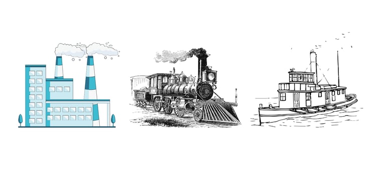 Con la Revolución Industrial, el transporte y la producción cambiaron radicalmente. Las fábricas empezaron a tener una capacidad de producción superior a lo que las ciudades podían consumir, naciendo así la necesidad de una logística más organizada. El tren redujo drásticamente tiempos y costes de transporte terrestre; el barco de vapor acortó rutas oceánicas; el telégrafo permitió coordinar operaciones a distancia en tiempo casi real (por ejemplo, gestionar tráfico ferroviario y órdenes militares).